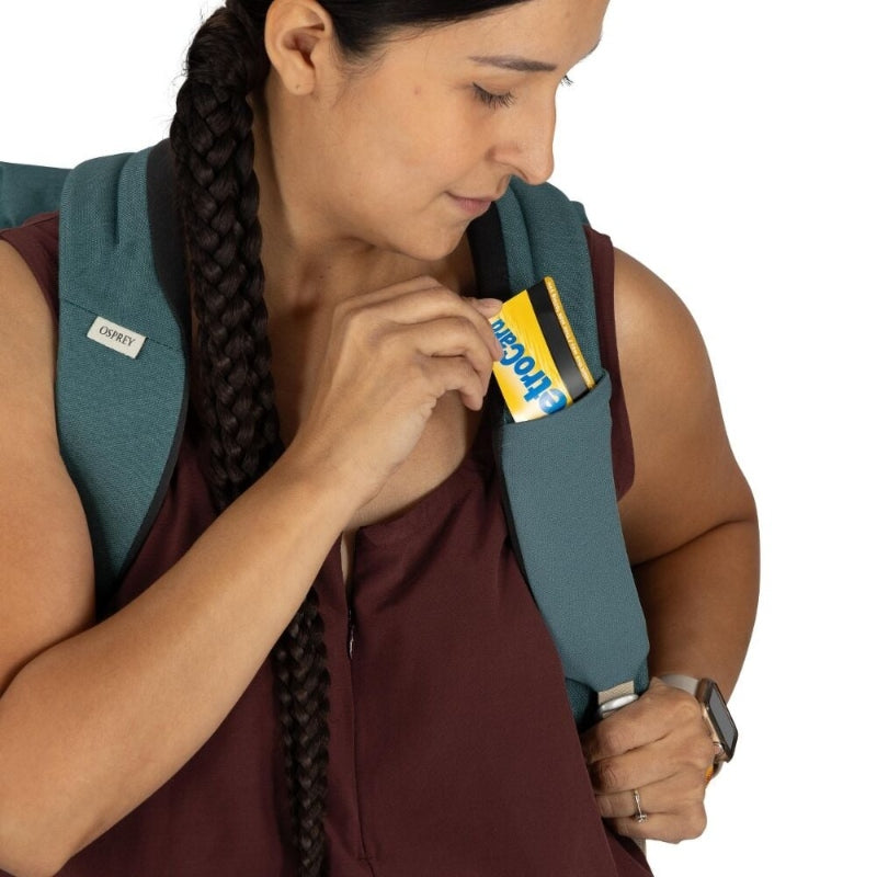 - Low-profile stretch water bottle side pocket