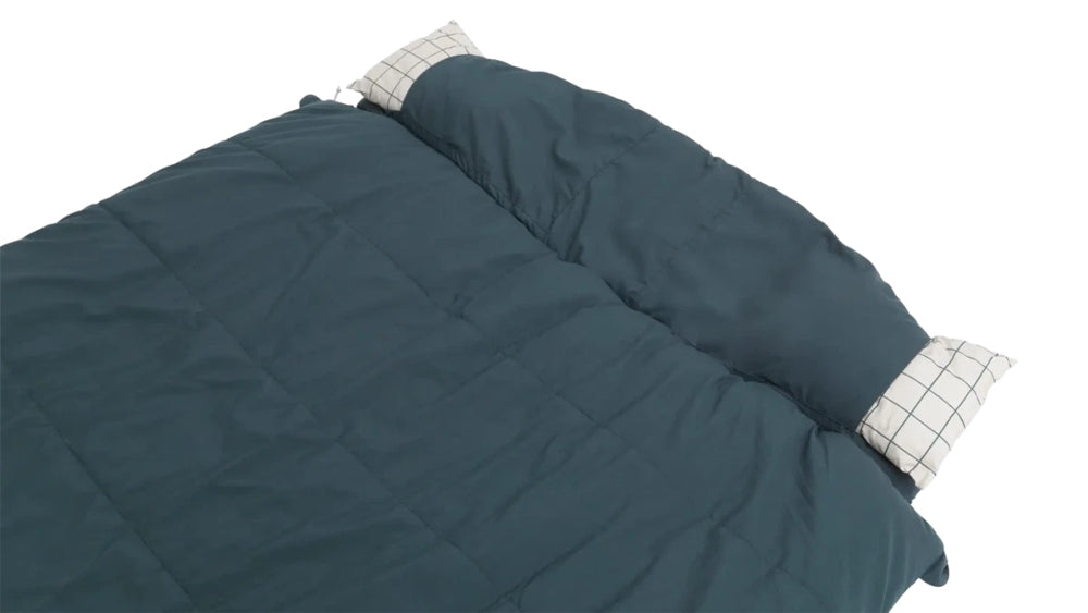 The Outwell Camper Lux Double sleeping bag is designed for comfort and versatility, making it perfect for couples and families enjoying serene camping experiences. Its unique zip-off hood and the ability to unzip into two separate duvets offer flexible sleeping arrangements suited to various needs. Practical features include a built-in removable pillow, an easy glide zip system, and a storage pocket for small essentials.